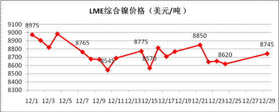 12月倫鎳價(jià)格繼續(xù)低位調(diào)整,不銹鋼下游需求放緩,市場鋼廠去庫存化,新鋼廠產(chǎn)能釋放,幾個方面影響不銹鋼價(jià)格進(jìn)一步走低,尤其是熱軋產(chǎn)品領(lǐng)跌市場。12月中下半旬,隨著新資源抵達(dá),鋼廠通過貿(mào)易商低價(jià)搶占市場的現(xiàn)象普遍,鋼廠間競爭日益激烈。