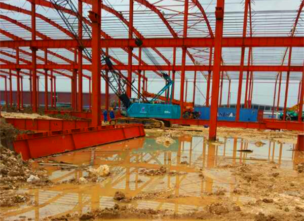 負(fù)責(zé)印尼加工中心建設(shè)工作的生產(chǎn)部經(jīng)理張華說:“咱們對印尼的高溫多雨天氣真是欲哭無淚啊?!庇∧岬靥幊嗟栏浇瑹釒в炅謿夂蛱卣髅黠@,一年中有半年在下雨,在路上走幾步就有細(xì)密的水珠往外冒。而加工中心所在的園區(qū)沒有市政排水設(shè)施,如果連續(xù)降雨,積水深處可達(dá)半米左右?;油诰蚬こ陶s上雨季,往往今天好不容易挖完的大基坑,大雨一沖,坑邊疏松的泥土塌方,一夜間就會恢復(fù)原狀,施工進(jìn)度遠(yuǎn)遠(yuǎn)落后于目標(biāo)。